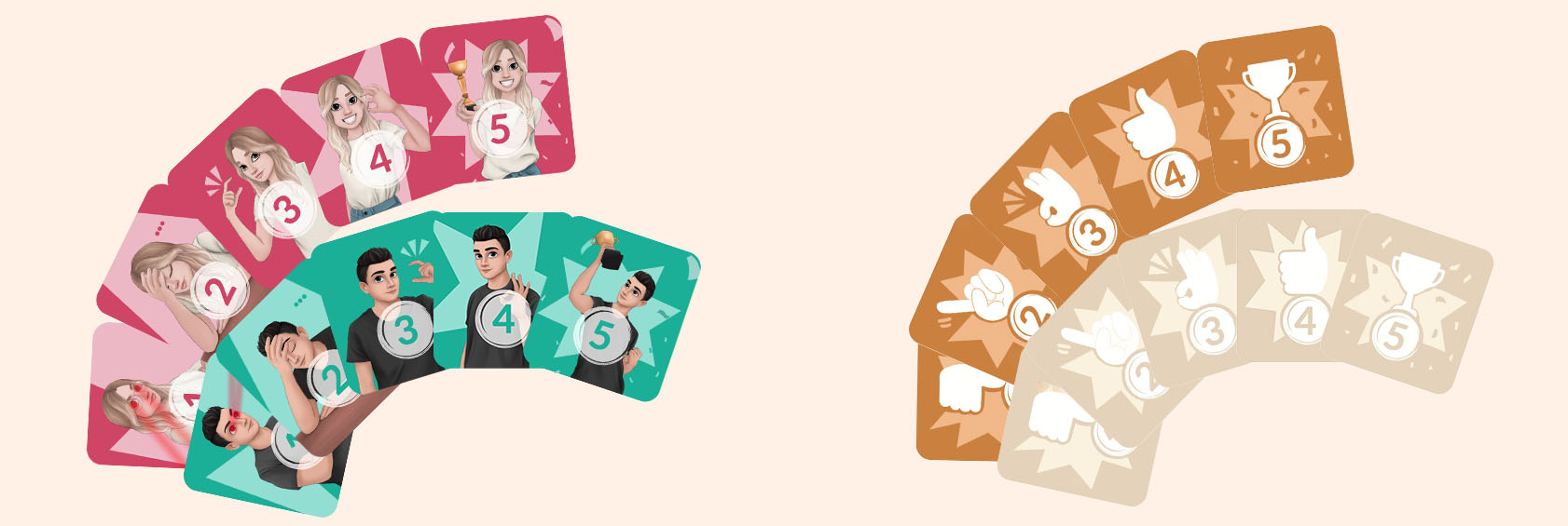 • Dodatnih 5 kategorija – 12 kartica po kategoriji: - Nabrajanja - Hipotetičke situacije - Koliko me dobro poznaješ (deep)? - Intimna pitanja - Intimni izazovi