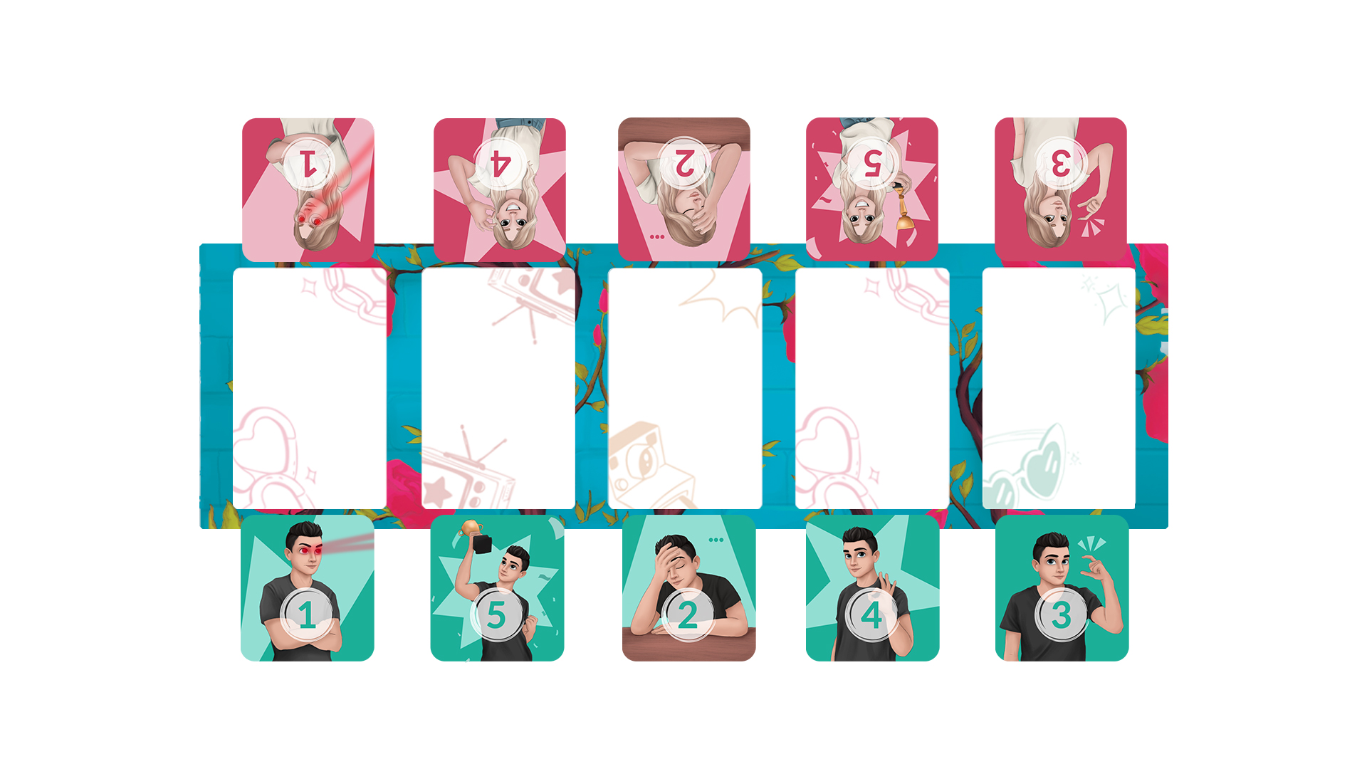(u kojoj izvlačite 5 pojmova, ocjenjujete ih ocjenama od 1 do 5 prema tome šta mislite da partner najviše ili najmanje voli, a vaš partner pogađa kako ste ocijenili pojmove)