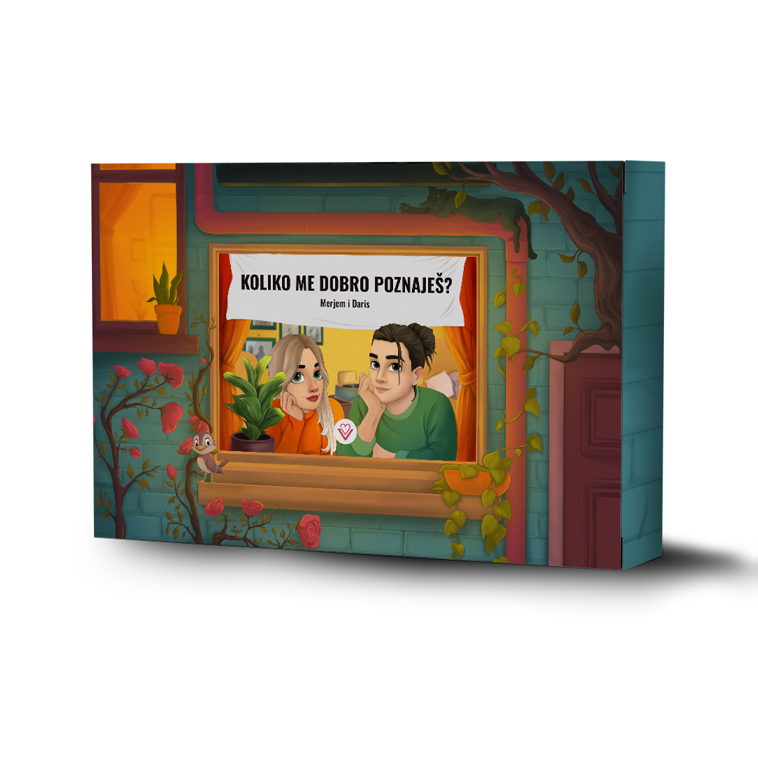 „Koliko me dobro poznaješ” je društvena igra za parove koja podstiče smijeh, iskrenost i dublje povezivanje – idealna za one koji žele provoditi kvalitetno vrijeme zajedno, bez ekrana.